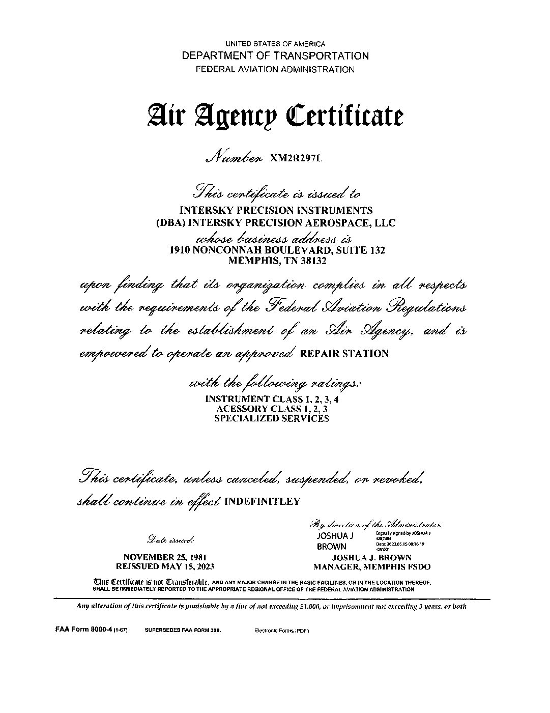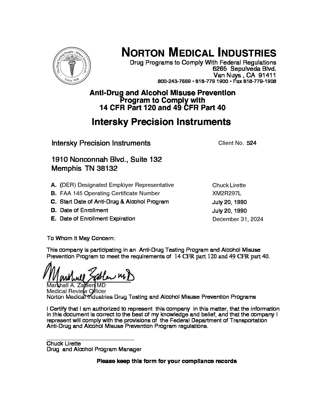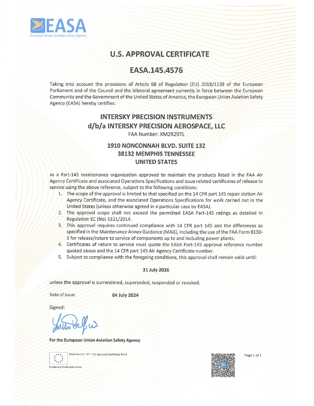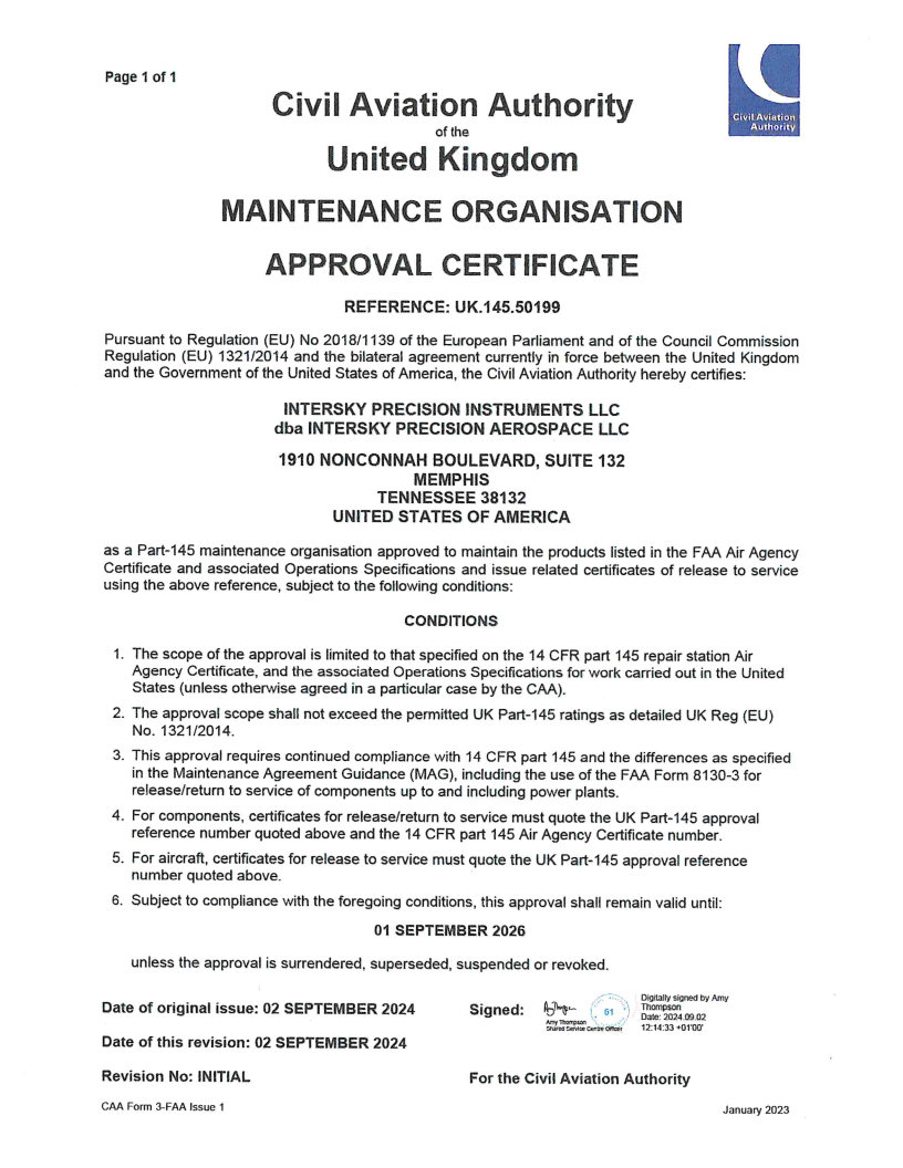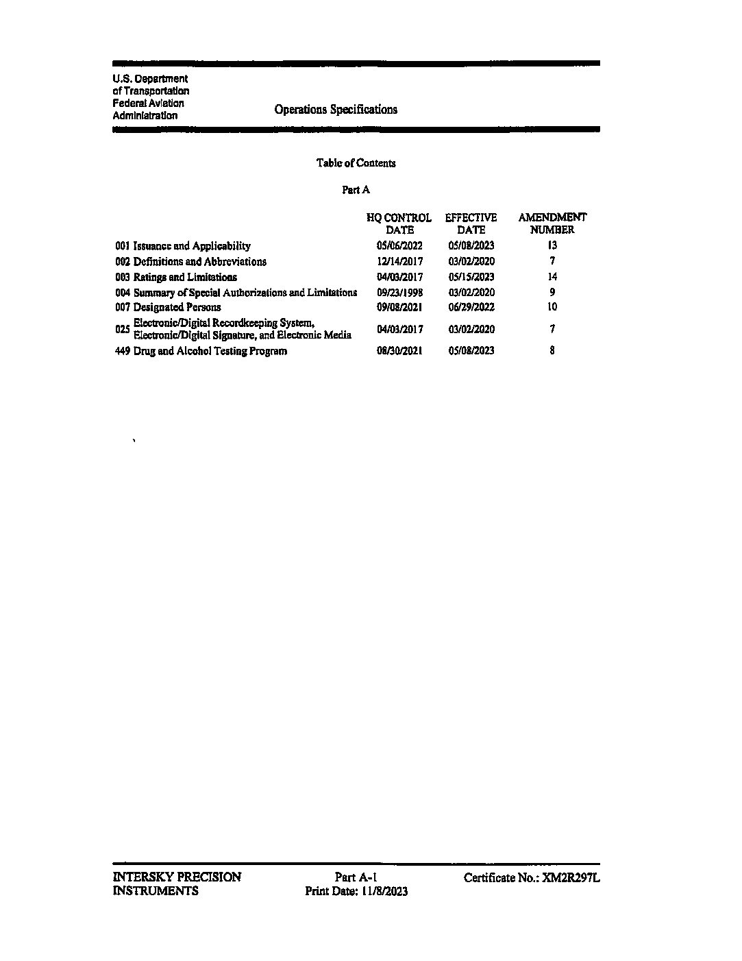 Intersky Certifications Air Agency Certificate Drug & Alcohol EASA Letter & Certificate Operations Specifications UK CAA Certification